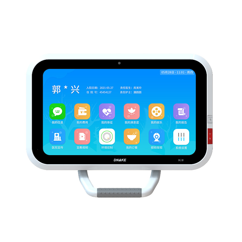 創(chuàng)新安裝在病床旁的支架或者搖臂上,用于顯示患者各項(xiàng)信息和報(bào)告,便于醫(yī)生和患者查看,具備各項(xiàng)娛樂功能,也可做娛樂設(shè)備試用,減輕患者住院焦慮。